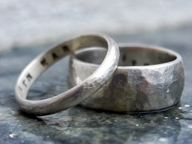 I make Glasswing recycled silver rings in a variety of finishes. I'm often asked about the different looks, so I am going to put up some photos to help clarify which is which. Here are examples of smooth, hammered, high polish and soft satin. I'll add more photos as I get time to upload them, really busy with finishing ring orders for sending out this week.